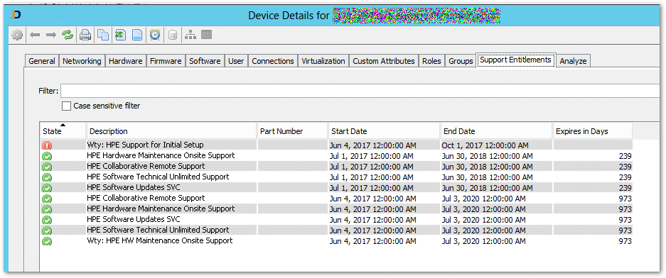 With this information, it is easy to see what servers need new support contracts or which devices run out of warranty soon.
