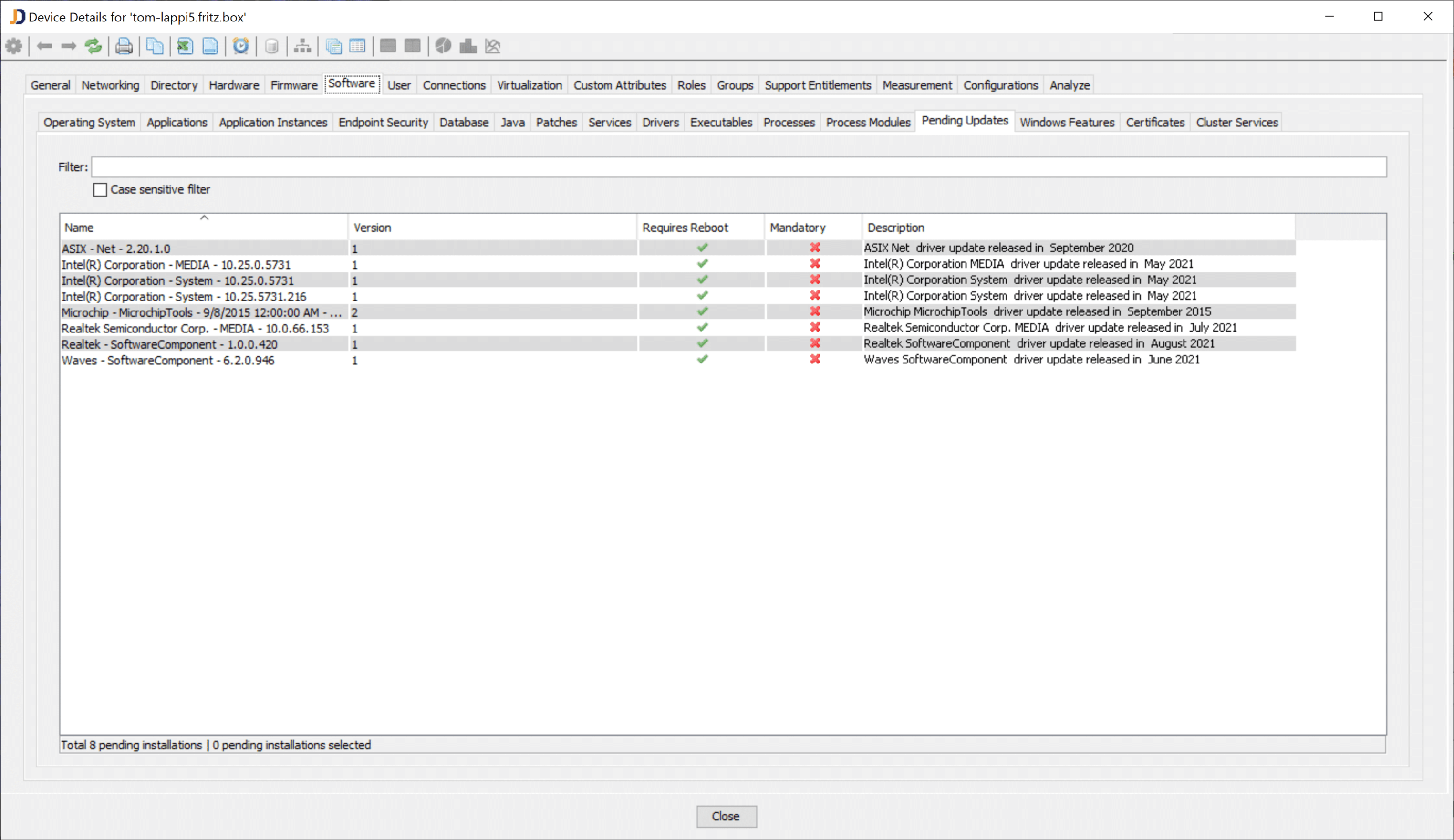 upon a customer request, we have implemented a new feature to collect the list of pending updates on Windows and Linux computers. Three weeks ago, we added this feature for Linux and with build 5086 we finalized the data collection for Windows computers.