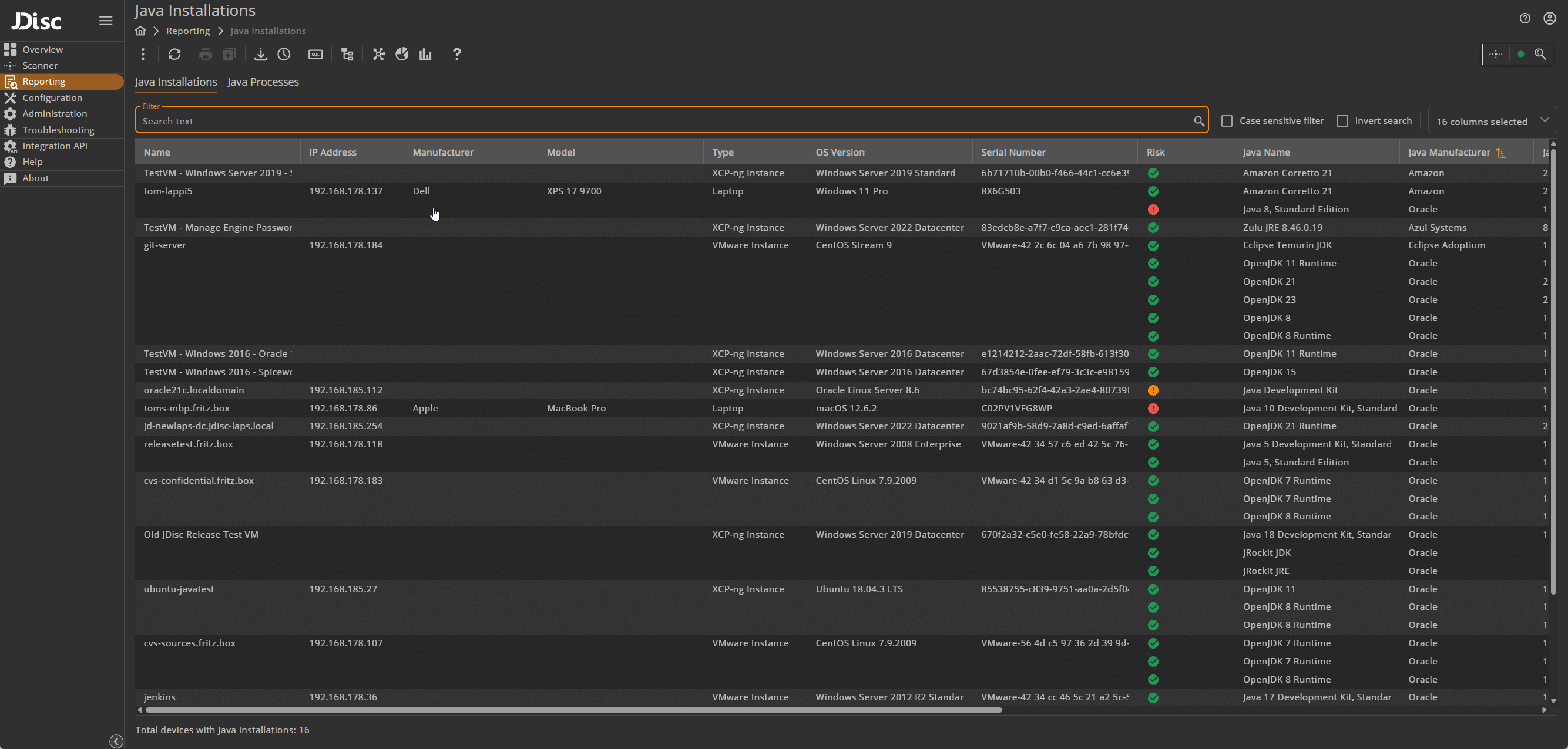 Especially for Oracle Java, JDisc Discovery has added a new report to check whether an Oracle Java installation is at risk for an software audit.