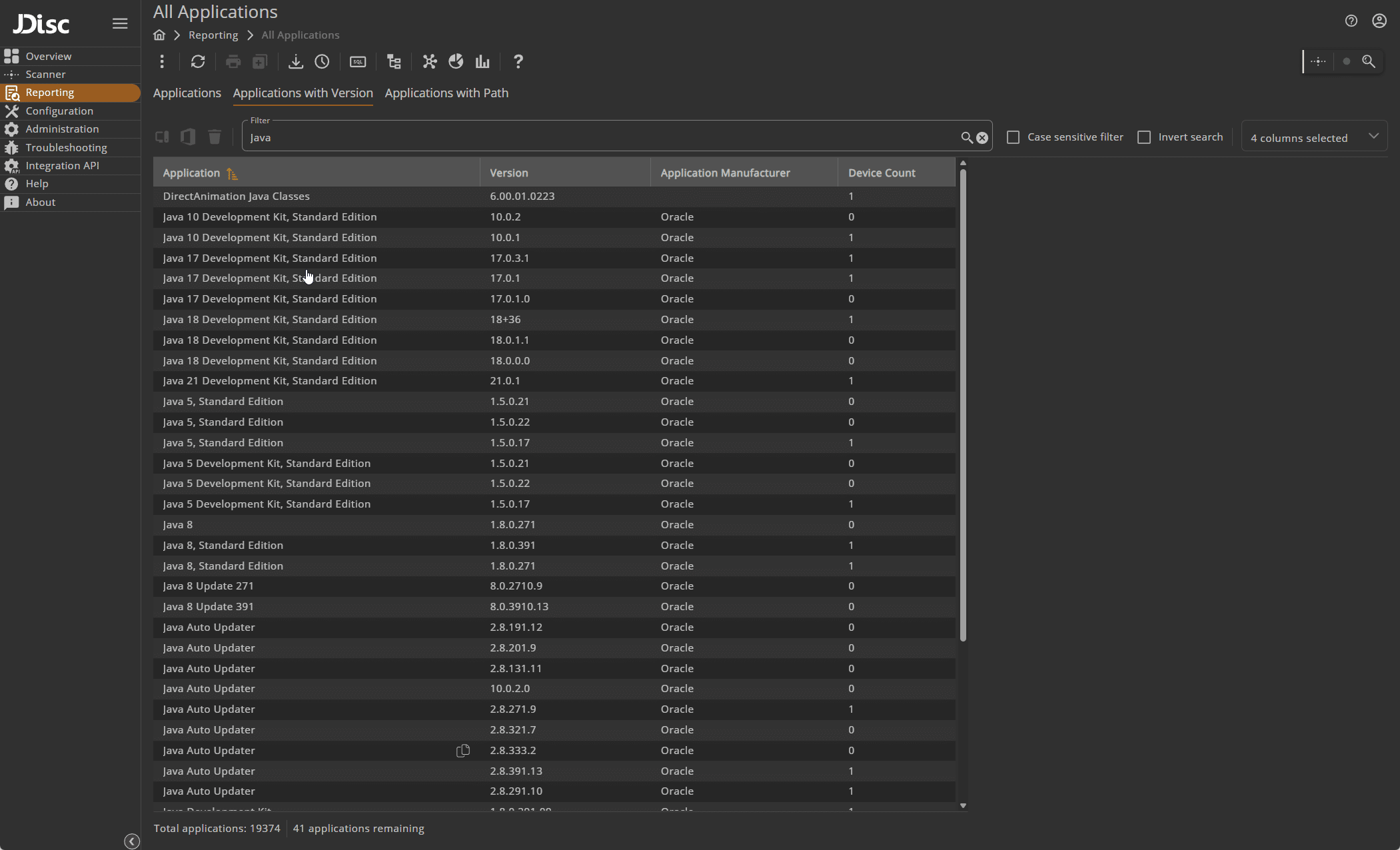 Effective Software Asset Management requires a proactive approach to tracking and managing Java installations. Tools like JDisc Discovery can be invaluable in this process. JDisc not only detects where Oracle Java is installed but also identifies the specific version and release in use. This insight enables IT teams to: