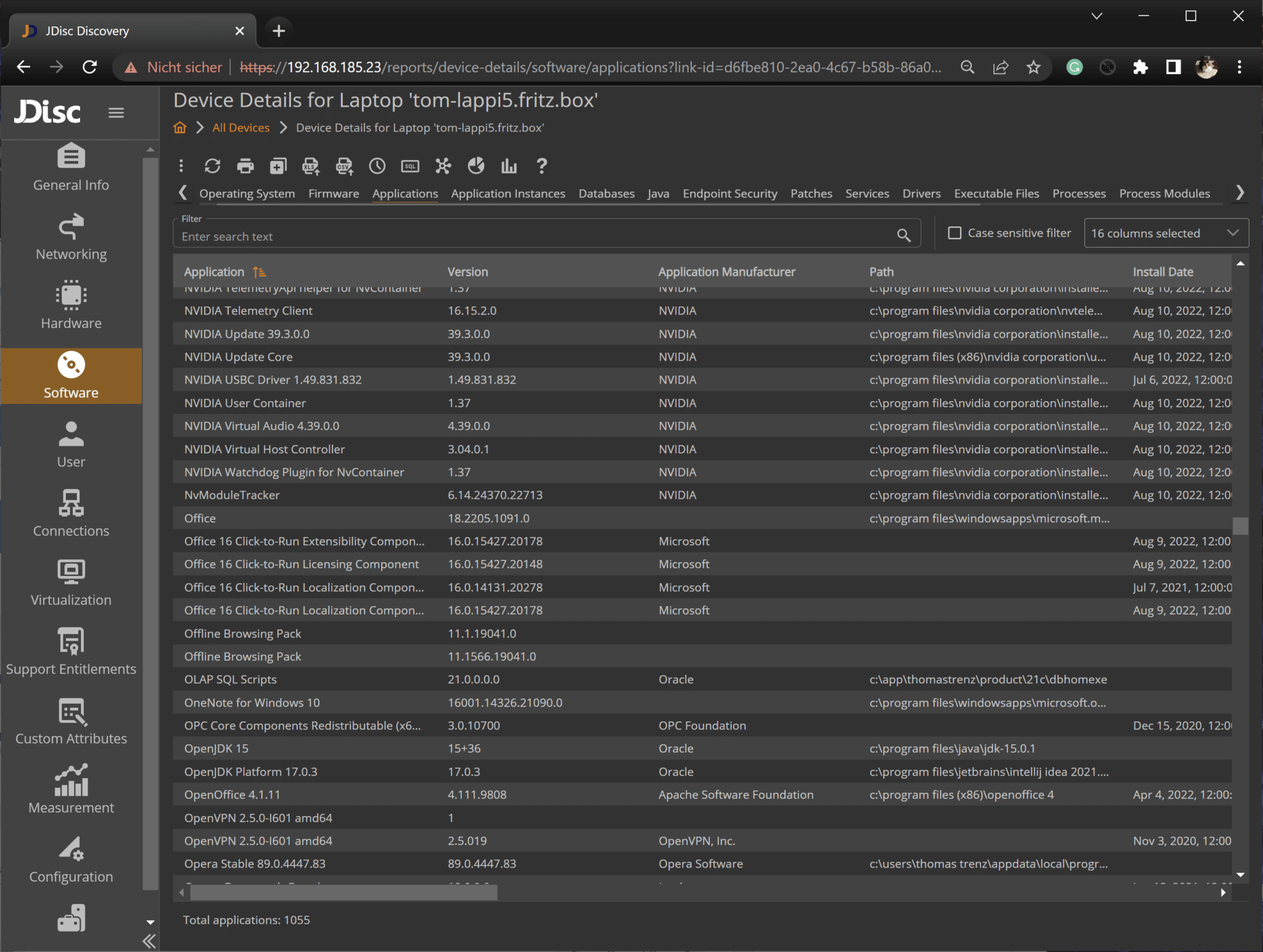 JDisc Network Discovery Software – Professional Edition is the full-featured IT network documentation solution for simple and highly complex infrastructures. Without the need for proprietary agents, JDisc Discovery scans heterogeneous networks consisting of different operating systems, protocols, device types, and applications. Plus, it also discovers all current virtualization technologies and cluster configurations.